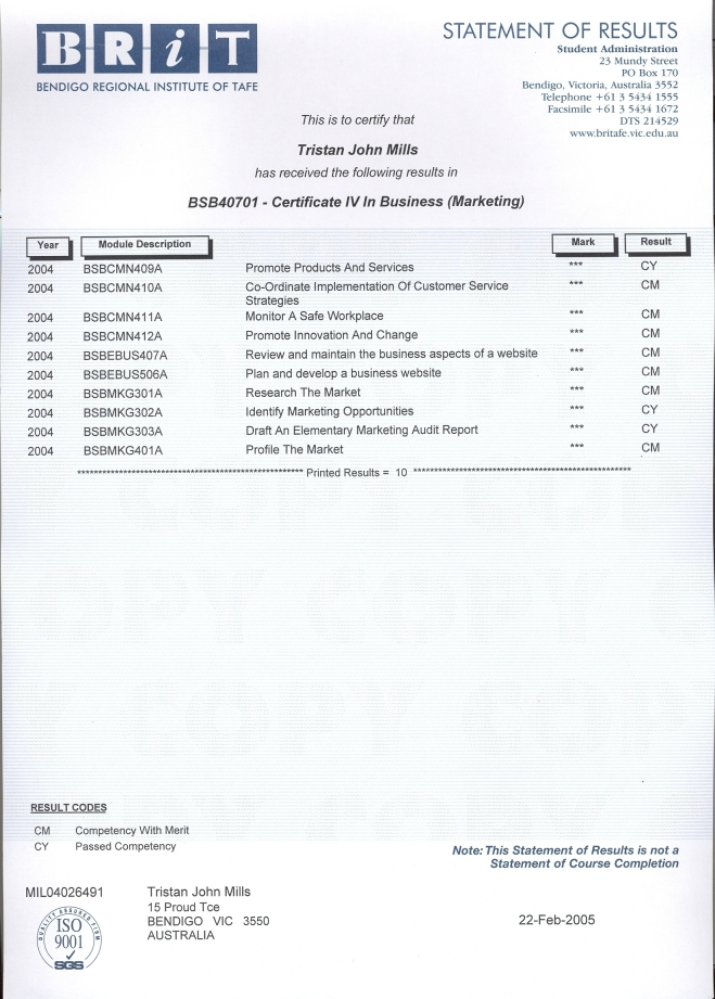 Academic Results for Certificate IV in Marketing